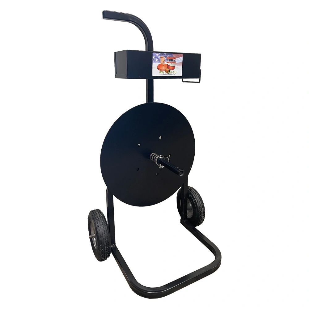 Our rugged steel-framed dispensers with pneumatic tires feature a tool tray and buckle storage, making any job easier. Each dispenser can adjust to one coil of ½” or ¾” strap, and one coil of 1¼“ to 1½” strap.